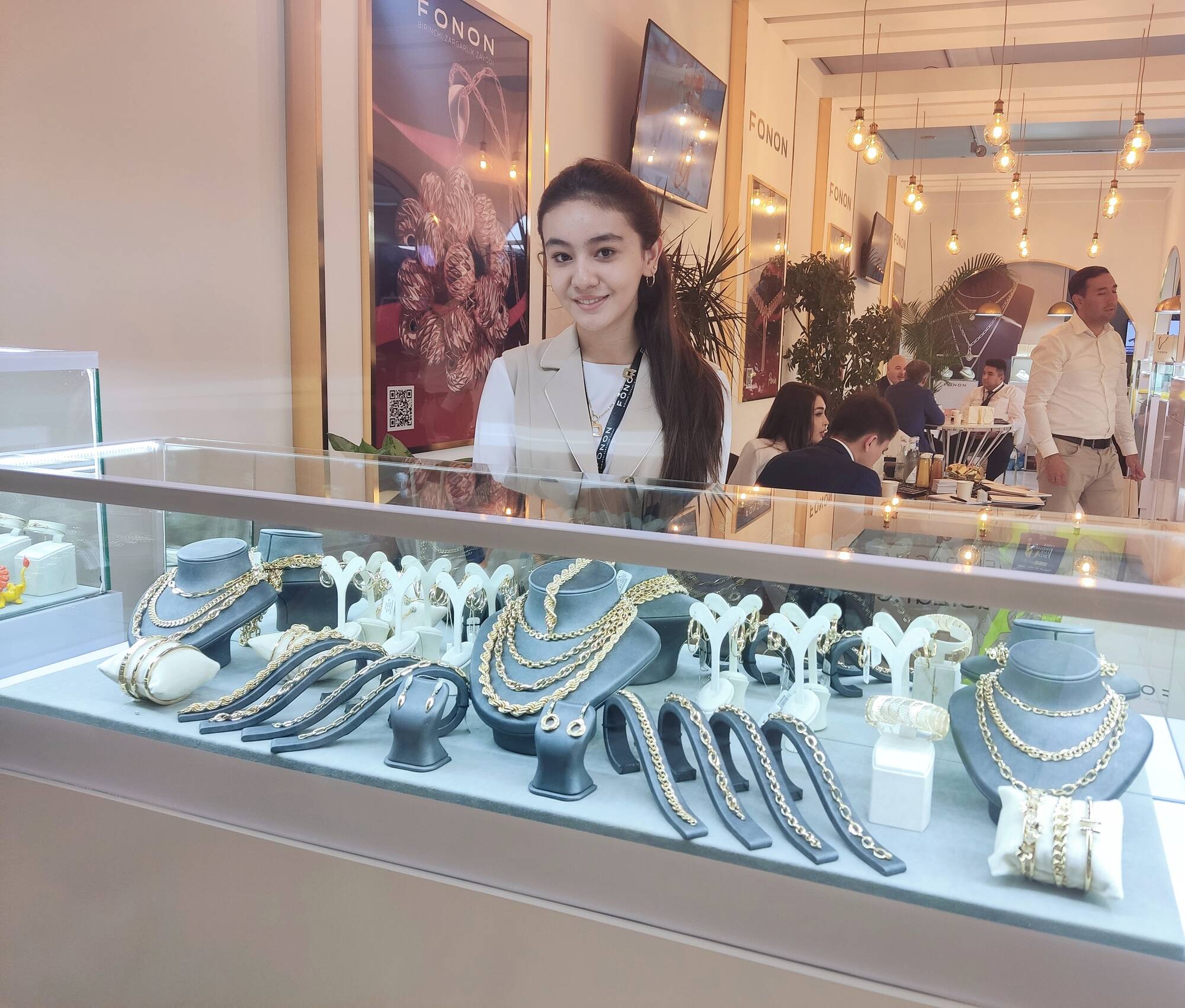— Наша компания, образованная в 2021 году, является одним из крупнейших производителей ювелирной продукции в Узбекистане и Центральной Азии. На заводе установлено передовое оборудование, привлечены мастера из Германии, Италии. Турции и Таиланда, — рассказывает менеджер по маркетингу Фариза Жумашева. — Организован полный цикл производства, используется местное сырье, золото поставляет Алмалыкский горно-металлургический комбинат. Особое внимание уделяем качеству продукции, гарантируем высокую пробу золота. По всему Узбекистану действует 26 фирменных магазинов «FONON». На выставке показали новую коллекцию украшений «Peonia». Это изделия, собранные из золотых шариков. Их особая огранка, похожая на алмазную, обеспечивает игру света, свойственную драгоценным камням. Впечатлены размахом выставки, нашли здесь новых партнеров, надеемся, что достигнутые договоренности позволят увеличить продажи.
