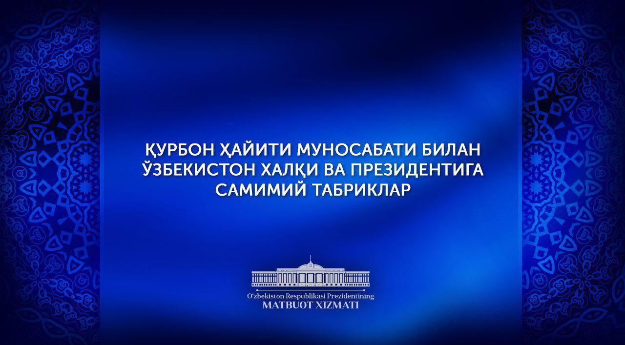 В связи с праздником Курбан хайит на имя Президента Республики Узбекистан Шавката Мирзиёева поступают искренние поздравления руководителей зарубежных стран и международных организаций, видных государственных, общественных и религиозных деятелей, сообщает пресс-служба Президента.