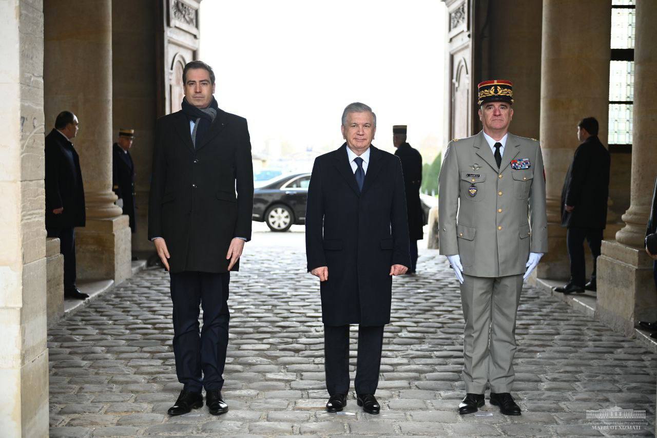 После церемонии делегация Узбекистана отправилась в Елисейский дворец, резиденцию Президента Франции, где состоятся двусторонние переговоры на высшем уровне.