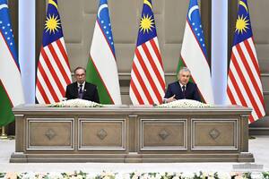 19:54 17.05.2024Президент Республики Узбекистан Шавкат Мирзиёев и Премьер-министр Малайзии Анвар Ибрагим провели переговоры с участием официальных делегаций двух стран
