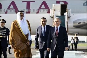 13:23 06.06.2023Вчера в Узбекистан по приглашению Президента Шавката Мирзиёева с государственным визитом прибыл Эмир Государства Катар шейх Тамим бин Хамад бин Халифа Аль Тани