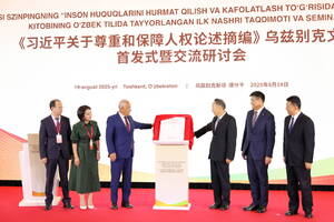 14:35 19.08.2025Сегодня состоялась презентация книги Председателя Китайской Народной Республики Си Цзиньпина «Об уважении и обеспечении прав человека», впервые изданной на узбекском языке