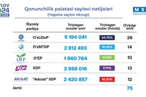 15:43 30.10.2024В воскресенье, 27 октября, в Узбекистане состоялись парламентские выборы в Законодательную палату Олий Мажлиса. По предварительным результатам, Либерально-демократическая партия получила наибольшее количество мест