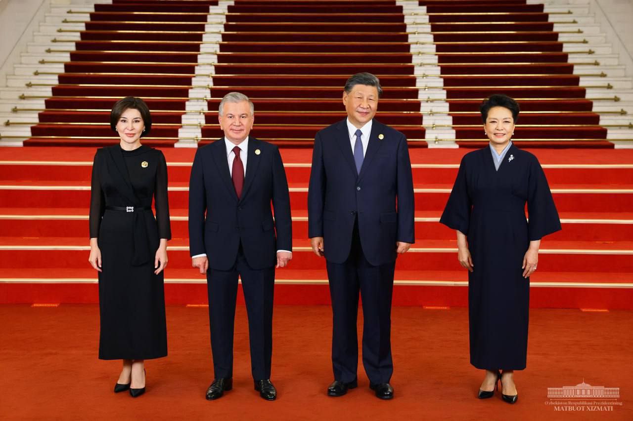 Oʻzbekiston Respublikasi Prezidenti Shavkat Mirziyoyev va rafiqasini Xitoy Xalq Respublikasi Raisi Si Szinpin va rafiqasi tantanali kutib oldi.