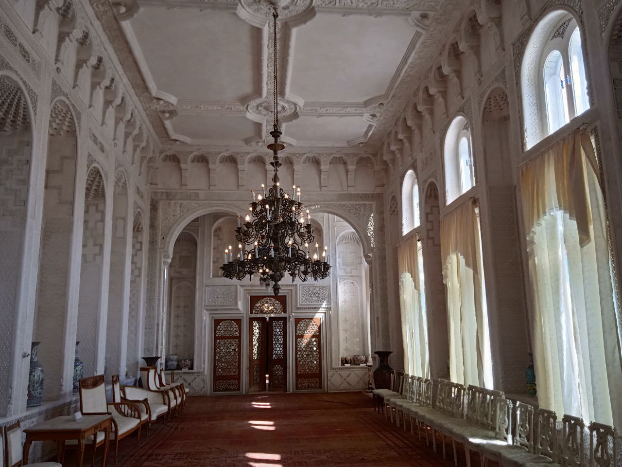 - Aytishlaricha, o‘ziga yozgi saroy qurdirish fikriga kelgan Amir Olimxon Usta Shirinning mahoratidan xabar topib, uni huzuriga chorlaydi,- deydi ”Sitorai Mohi Xossa”- xalq amaliy bezak san’at muzeyi direktori Suhrob Salimov. - Unga bo‘lajak saroyga dunyoda o‘xshashi yo‘q bezak ishlarini bajarish topshirig‘ini beradi. Shunda usta rozilik bildirib, bir shart qo‘yadi. “Bezak ishlari tugamagunga qadar “Oq saroy”ga hech kim kirmasligi kerak”, deydi. Amir bu shartga ko‘ngach, Usta Shirin o‘z qavatiga qirqqa yaqin shogirdlarini olib ishga kirishadi. Gap shundaki, usta va shogirdlari har birining ganchkorlikda o‘z uslubi bo‘lgan. Bir – birini takrorlamagan. Kishidan benihoya katta sabr – toqat, qunt,nozik did, mahorat talab qiladigan hunar ortidan yaxlit oyna ustida 100 ming bo‘lakdan iborat naqshinkor manzaralar yaratilgan.