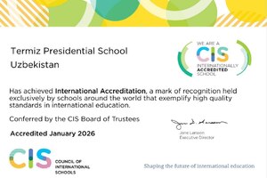 16:08 23 Yanvar 2026Termiz shahridagi Prezident maktabi nufuzli Xalqaro maktablar kengashi (CIS) aʼzoligiga qabul qilindi.