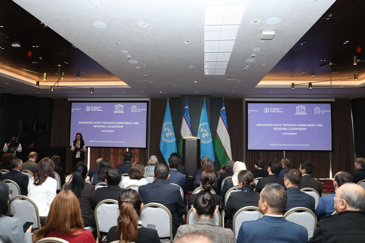 Samarqand shahrida YUNESKO Bosh konferensiyasining 43-sessiyasi doirasida “Mustahkam majburiyat va mintaqaviy hamkorlik orqali maktabgacha taʼlimni rivojlantirish” mavzuida tadbir oʻtkazildi. Unda Maktabgacha va maktab taʼlimi vazirligi mutasaddilari, YUNESKOning taʼlim sohasi boʻyicha masʼullari va Oʻzbekistondagi vakolatxonasi hamda YUNICEF vakillari ishtirok etdi.