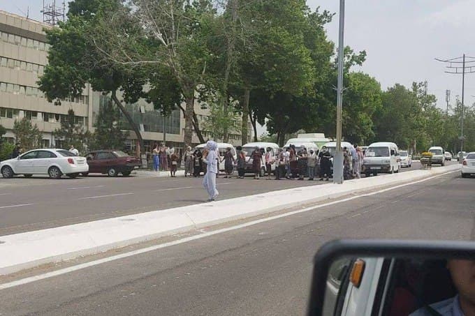 Olmaliqda ayollar yoʻlning qatnov qismini toʻsib qoʻydi