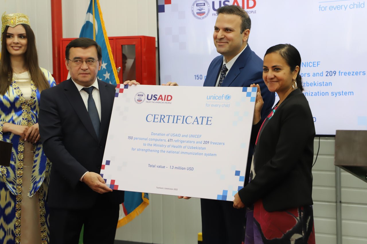 Umumiy qiymati 1,3 million AQSH dollari boʻlgan 671 ta sovutgich, 212 ta muzlatgich va 150 ta kompyuterni oʻz ichiga olgan ushbu uskuna Oʻzbekistonning vaksinani funksional va samarali boshqaruvini tatbiq etish qobiliyatini oshiradi. Ushbu jihozlar butun mamlakat boʻylab birlamchi tibbiy yordam muassasalariga tarqatiladi.