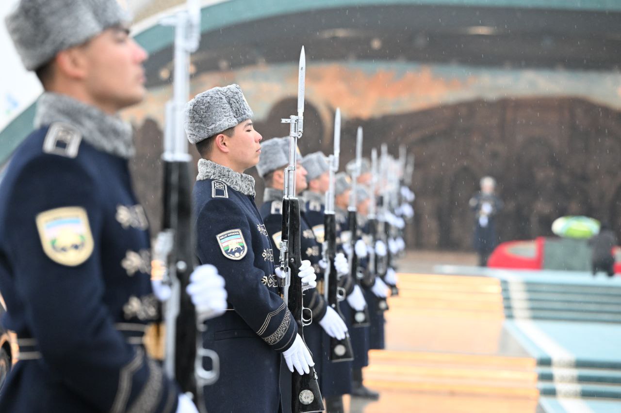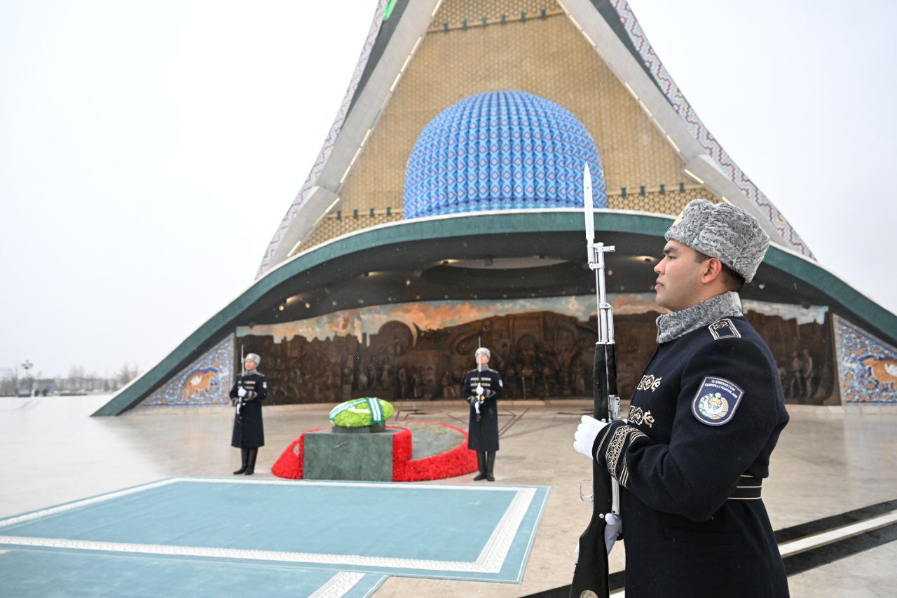 Oliy martabali mehmon Mustaqillik monumenti poyiga gul qo‘ydi.
