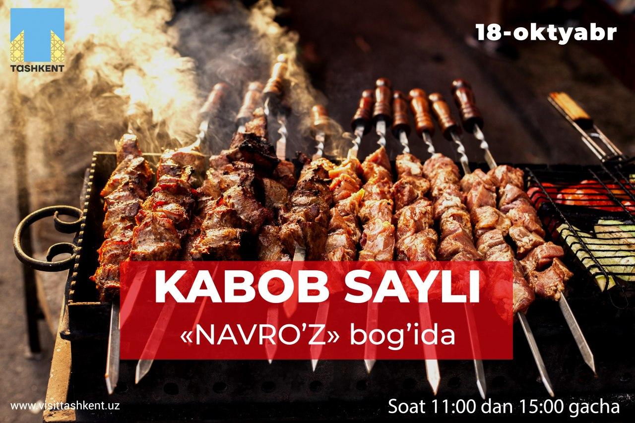 Joriy yil 18-oktyabr kuni soat 11:00dan 15:00ga qadar poytaxtimizning “Navroʻz” istirohat bogʻida Turizmni rivojlantirish davlat qoʻmitasi va Toshkent shahar hokimligi tashabbusi bilan 10 metrlik kabob festivali oʻtkaziladi.