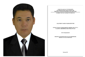 18:21 17.06.2025Allayarov Xamza Nazaraliyevichning “Termiz tumani tuproqlarining hozirgi holati va ularning mikrobiologik indikatsiyasi” mavzusidagi dissertatsiyasi himoyasi e’loni.