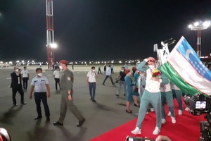 23:41 09 Август 2021Айни дамда Токио-2020 ёзги Олимпия ўйинларида иштирок этган делегациямиз бўлган самолёт Тошкентга қўнди. Aэропортда ўзбекистонлик олимпиадачиларни тантанали кутиб олиш маросими бўлиб ўтмоқда. Жараёндан «Халқ сўзи» мухбири Инобат Аҳатова хабар бермоқда.