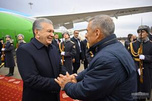 18:36 23 Октябр 2024Аэропортда Ўзбекистон раҳбарини Татаристон Республикаси Раиси Рустам Минниханов, Қозон шаҳри мэри Ильсур Метшин ва бошқа расмий шахслар кутиб олди.
