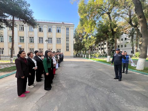 Тадбир давомида, шунингдек, амалий кўргазмали машғулотлар ўтказилиб, талабаларга бинодан тўғри чиқиш, ёрдамга муҳтожларга кўмаклашиш, шахсий ҳимоя воситаларидан фойдаланиш ҳамда тинчлик ўрнатилгунга қадар хавфсиз ҳудудда тўпланиш қоидалари амалий тарзда намойиш этилди.