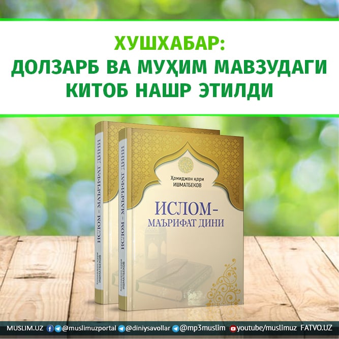 Муҳтарам устоз Ҳомиджон қори Ишматбековнинг "Ислом – маърифат дини" деб номланган янги китобига муаллиф томонидан энг долзарб мавзуларда ёзилган мақолалари жамланган.