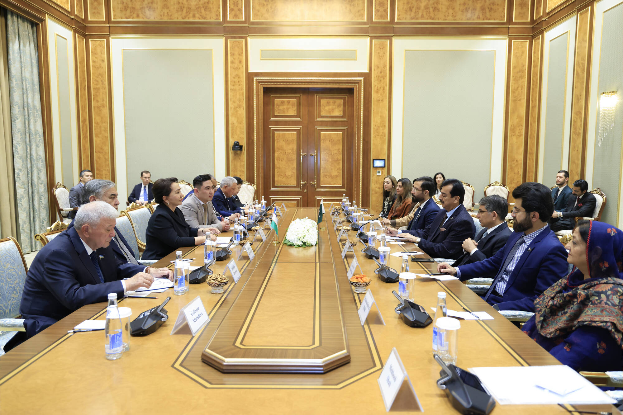 Олий Мажлис Сенати Раиси Танзила Нарбаева Парламентлараро иттифоқларнинг 150-юбилей ассамблеясида иштирок этиш учун мамлакатимизга ташриф буюрган Покистон Ислом Республикаси парламенти Сенати Раиси Юсуф Ризо Ғилони бошчилигидаги делегацияни қабул қилди.