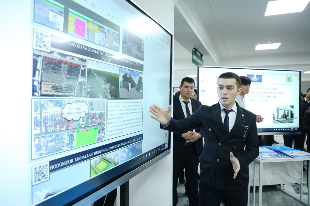 ТДМАУ ректори Расул Тўраев «оғир» маҳаллаларни комплекс ривожлантиришга қаратилган бош режаларни ишлаб чиқиш механизмлари бўйича тақдимот қилди. Таъкидланганидек, лойиҳа маҳаллалар инфратузилмасини яхшилаш, муҳандислик-коммуникация тармоқларини такомиллаштириш ҳамда ҳудудларнинг барқарор ижтимоий-иқтисодий ривожланишини таъминлашга хизмат қилади.