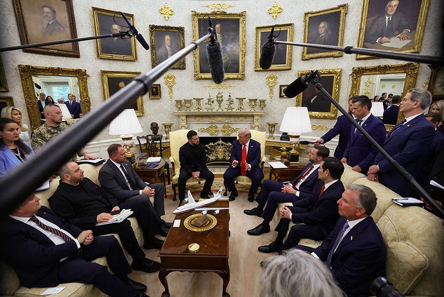 Оқ уйда президент Дональд Трамп Украина раҳбари Владимир Зеленскийни қабул қилди. Зеленский билан бирга Британия ва Италия бош вазирлари Кир Стармер ҳамда Жоржа Мелони, Германия канцлери Фридрих Мерц, Финляндия ва Франция президентлари Александр Стубб ва Эммануэль Макрон, НАТО бош котиби Марк Рютте ҳамда ЕИ комиссияси раиси Урсула фон дер Ляйен ҳам ташриф буюрди.