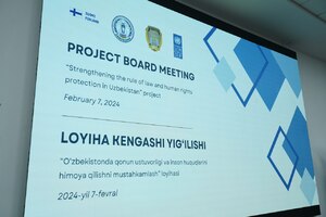 15:23 12.02.2024Адлия вазирлигида “Ўзбекистонда қонун устуворлиги ва инсон ҳуқуқларини ҳимоя қилишни мустаҳкамлаш” лойиҳаси доирасида Бирлашган Миллатлар Ташкилоти Тараққиёт Дастурининг Ўзбекистондаги доимий вакили ўринбосари, Ўзбекистон Республикаси Олий Мажлисининг Инсон ҳуқуқлари бўйича вакили (Омбудсман) ва Финляндиянинг Марказий Осиёдаги элчиси иштирокида Лойиҳа Кенгашининг йиғилиши...