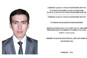 11:13 15.05.2024Усмонов Фарҳоджон Комилжоновичнинг (тиббиёт фанлари бўйича) фан доктори (DSc) диссертациясининг ҳимояси тўғрисида