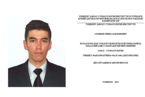 22:49 13.05.2024Сохибов Ойбек Мардоновичнинг (тиббиёт фанлари бўйича) фалсафа доктори (PhD) диссертациясининг ҳимояси тўғрисида