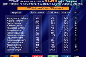 11:40 03 Сентябрь 2020Всего в стране с начала пандемии, из 42 540 зарегистрированных граждан с этим заболеванием, выздоровело 39 883 пациента, и уровень лечения составляет 93%