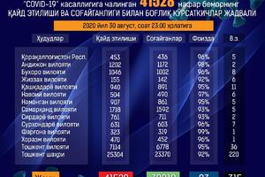 10:07 31 Август 2020Всего в стране с начала пандемии, из 41 528 зарегистрированных граждан с этим заболеванием, выздоровело 38 819 пациентов, и уровень лечения составляет 93%
