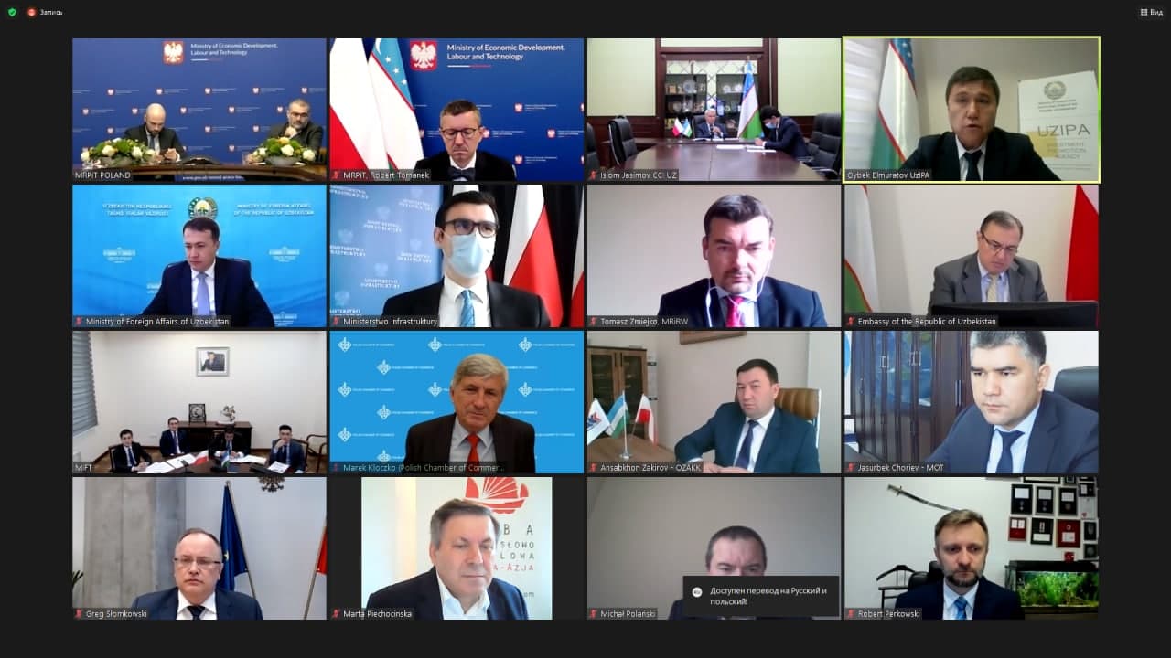 14 апреля текущего года в формате видеоконференции состоялось 7-е заседание Узбекско-Польской Межправительственной комиссии по экономическому сотрудничеству. Мероприятие прошло под председательством заместителя министра инвестиций и внешней торговли Республики Узбекистан Б.Абидова и заместителя государственного секретаря министерства экономического развития, труда и технологий Республики Польша Р.Томанека.