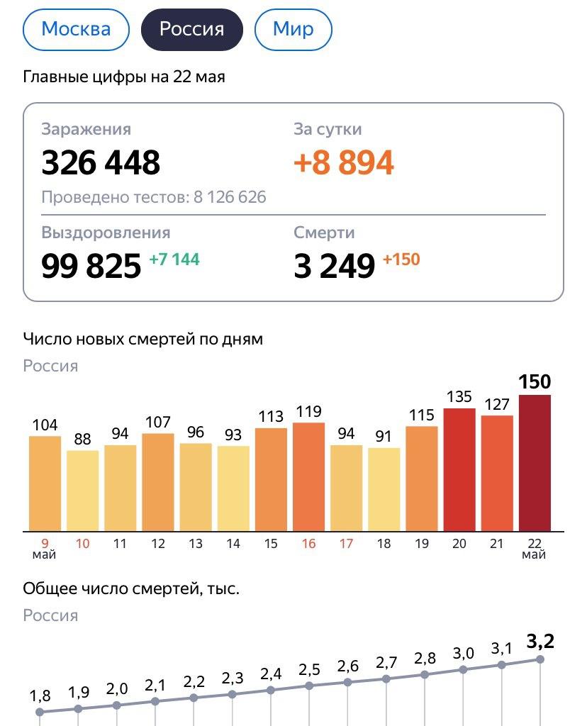 За весь период в России от коронавируса скончалось 3249 человек.