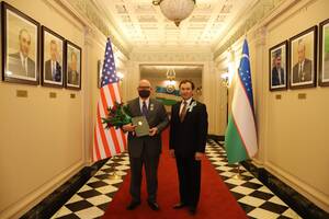11:01 26 Апрель 2021По информации Посольства Узбекистана в Вашингтоне, в нашу страну сегодня прибывает Марк Эдвард Риз, американский ученный, бывший директор Центра региональных исследований Военно-морской академии США, кавалер ордена «Дустлик», автор перевода романа А.Кадыри «Минувшие дни» («Уткан кунлар») на английский язык