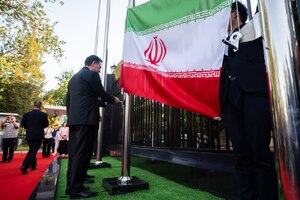 По завершении заседания Совета глав государств-членов ШОС 4 июля состоялась торжественная церемония поднятия государственного флага Исламской Республики Иран перед зданием Секретариата ШОС в Пекине