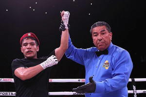 12:57 30 Апрель 2019Боксер из Узбекистана Муроджон Ахмадалиев в третьем раунде отправил в нокаут мексиканца Карлоса Карлсона