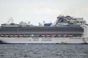 13:42 06 Февраль 2020Японцы с берега морально поддерживают пассажиров круизного лайнера Diamond Princess, которых из-за обнаруженного у некоторых туристов вируса не выпускают из кают