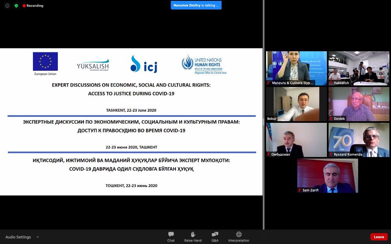 Сегодня, 22 июня дан старт двухдневной дискуссии в формате видео-конференц-связи о доступе к правосудию по вопросам экономических, социальных и культурных прав в Узбекистане и других странах.
