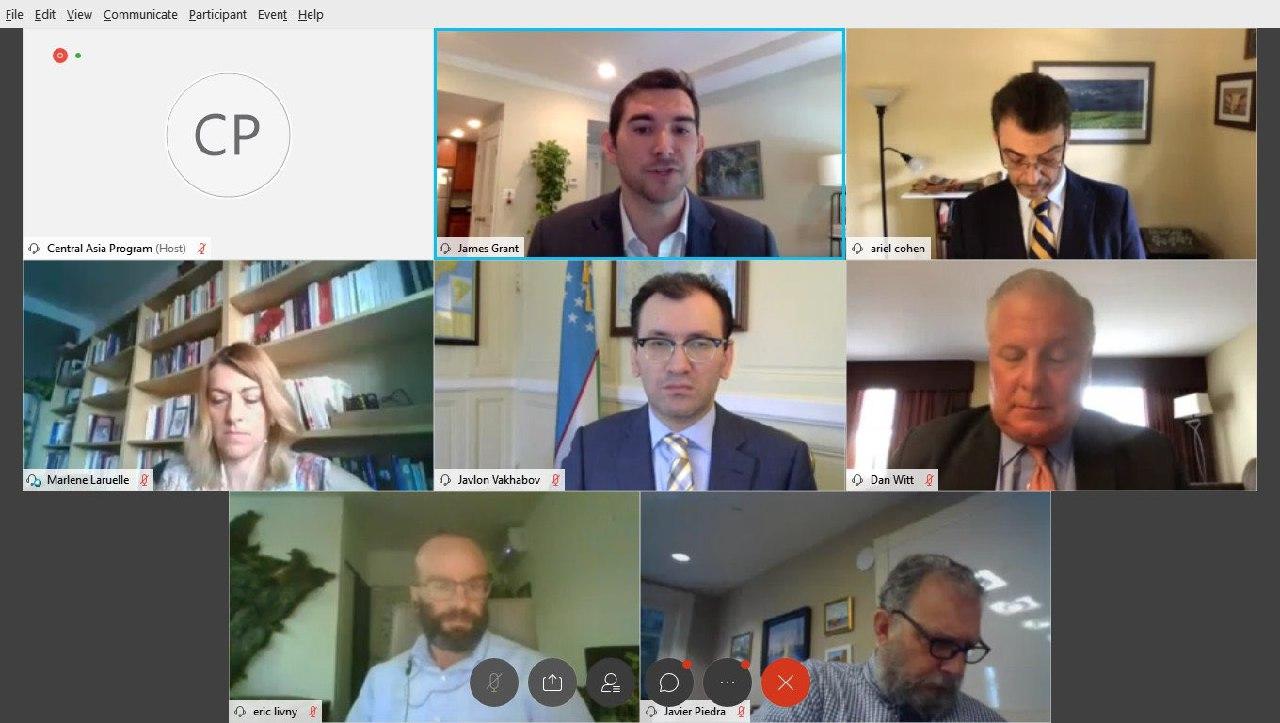 На брифинге выступили глава нашей дипмиссии в США Жавлон Вахабов, президент ITIC Даниэл Витт, член Совета по международным отношениям Ариэль Коэн, заместитель помощника администратора USAID Хавьер Пьедра и главный экономист по Центральной Азии ЕБРР Эрик Ливни. В онлайн-режиме также участвовали официальные лица, представители аналитических центров, неправительственных организаций, СМИ и бизнес кругов США (около 70 чел.).