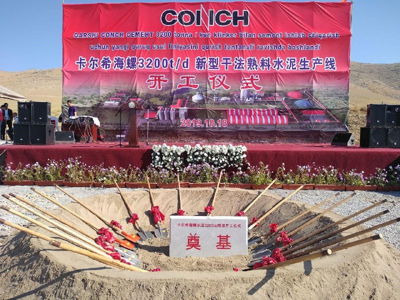 В Китабском районе Кашкадарьинской области состоялась торжественная церемония закладки первого камня в основание цементного завода ИП ООО «Qarshi Conch Cement» со 100 процентным участием китайской компании «Anhui Conch Cement Co LTD».