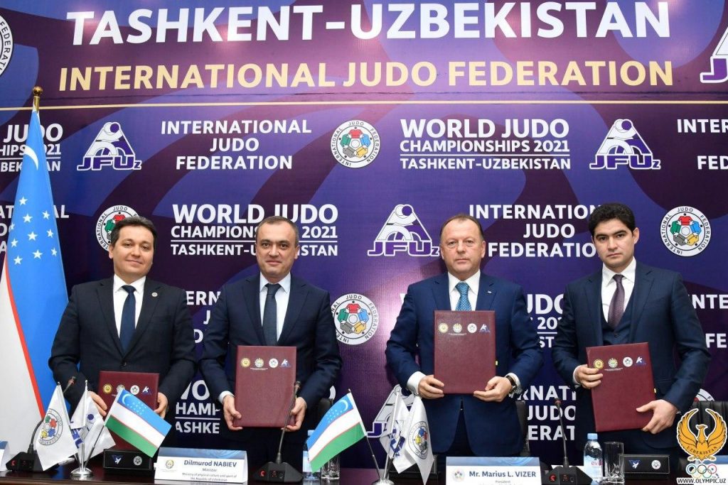 В НОК прошло подписание двустороннего договора между федерацией дзюдо Узбекистана и международной федерацией дзюдо по проведению чемпионата мира по дзюдо 2021 года среди взрослых в Ташкенте.