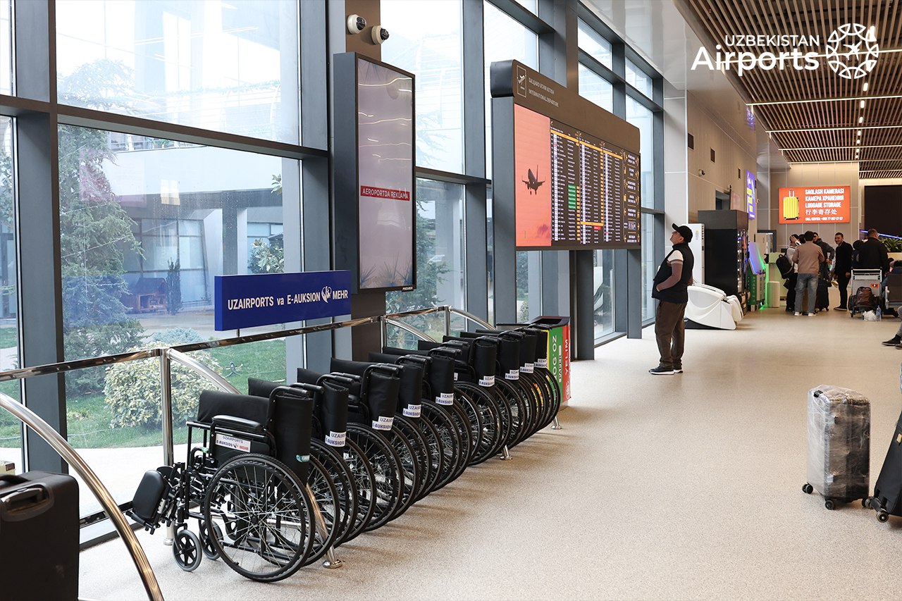 В рамках Меморандума о взаимном сотрудничестве между АО «Uzbekistan Airports» и АО «Организация электронных онлайн-аукционов», направленного на социальную поддержку граждан и развитие доступной среды, аэропорту столицы были переданы 30 специализированных инвалидных колясок.