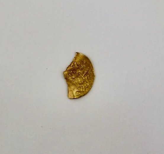 Оказалась, что поврежденная, но хорошо сохранившаяся монета, – это золотой динар весом 1,92 грамма. Как известно, в мусульманских странах золотые монеты назывались "динар", а серебряные – "дирхем".