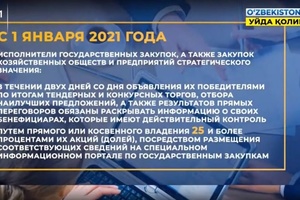 13:17 13.07.2020Выигравшие тендер на госзакупки обязаны раскрывать информацию о своих бенефициарах и владельцах. Данный указ подписал президент Шавкат Мирзиеев
