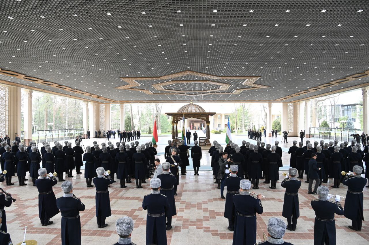 O‘zbekiston Respublikasi Prezidenti Shavkat Mirziyoyev Belarus yetakchisini samimiy kutib oldi va shohsupaga taklif qildi. Ikki mamlakat madhiyalari yangradi.