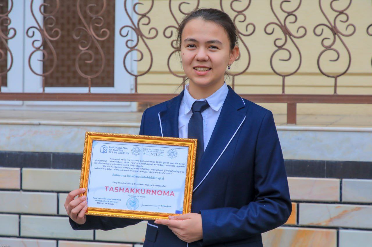 Ayni paytda ushbu nufuzli maktabning 11-sinf oʻquvchisi boʻlgan Dilafroʻz Sobirova shu kunlarda AQSHdagi dunyoning eng nufuzli oliy taʼlim muassasalaridan biri boʻlgan Harvard universitetiga bakalavriat bosqichi uchun 100 foizli natija bilan oʻqishga kirdi. Bu grant miqdori 392 ming AQSH dollarini tashkil etadi. Tengdoshlari havas qilsa arziydigan yutuqlarga erishayotgan aʼlochi qiz hali maktab yoshiga yetmagan paytdayoq onasi va bobosining koʻmagida oʻqish, yozishni oʻrgandi. Shu tarzda bolaligidan ota kasbiga qiziqib, biologiya, kimyo fanlarini chuqur oʻrganishga kirishdi. Boshlangʻich sinfda ingliz tilini oliy taʼlim muassasalariga tayyorgarlik koʻrayotgan abituriyent aka-opalari bilan birga jadal ravishda oʻzlashtirdi.