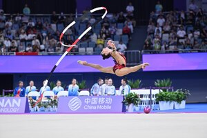09:23 08 Oktyabr 2023Badiiy gimnastika boʻyicha Oʻzbekiston terma jamoasi aʼzosi Taxmina Ikromova delegatsiyamizga navbatdagi oltin medalni taqdim qildi.