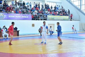 12:24 03 May 2021Aprel oyining soʻnggi kunlarida Buxoro shahrida sambo boʻyicha oʻsmirlar oʻrtasidagi Oʻzbekiston chempionati oʻtkazildi. Unda respublikamizning turli hududlaridan jami 450 nafarga yaqin sportchi medallar uchun kurash olib bordi.