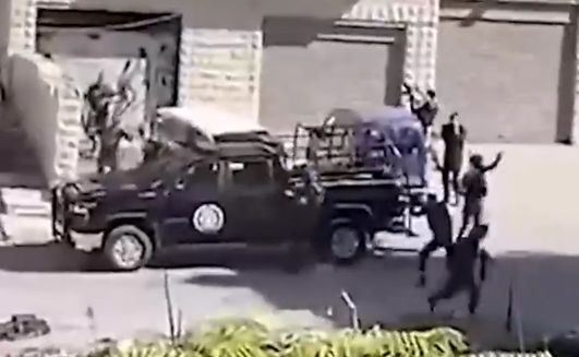 Videoda oʻq oʻtkazmaydigan sovut kiygan odamlar uy yaqiniga yugurib kelib, asfaltdan pulemyotlarni tortib olishlari aks etgan. Keyin ular mashina orqasidan yugurib, nomaʼlum odamlarga qarata oʻq otishni boshlaydilar. Ushbu otishmaning aniq joyi maʼlum qilinmagan.