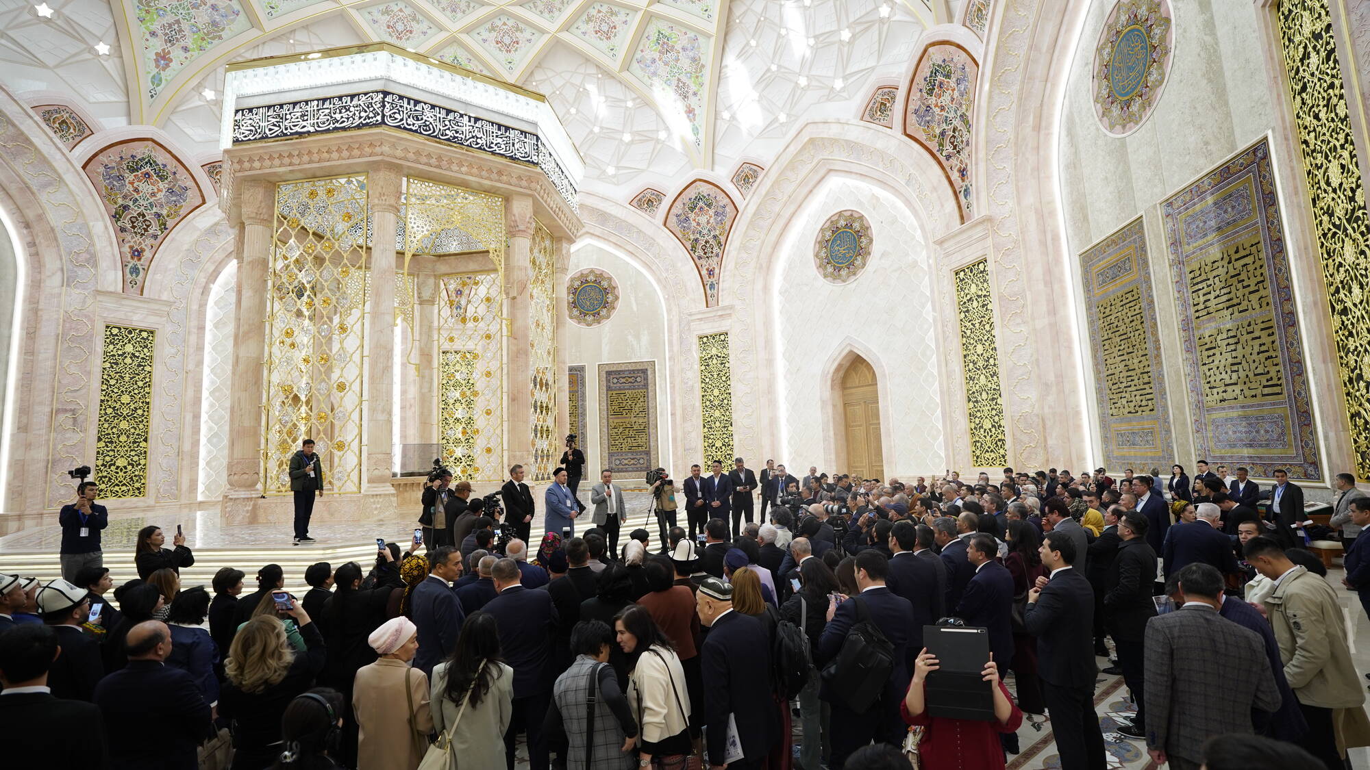 – Ushbu zal muhtaram Prezidentimiz tomonidan ilgari surilgan mualliflik gʻoyasi asosida barpo etildi. Zalning umumiy maydoni 1200 kvadrat metrni, balandligi esa 64 metrni tashkil etadi. 50 tonna vaznga ega boʻlgan ulkan va benazir qandil osilgan. U dunyodagi eng yirik qandillardan biri boʻlib, dunyoga mashhur Svarovski toshlari bilan bezatilgan.