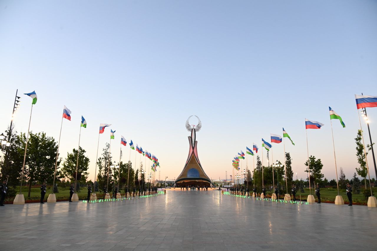 Rossiya prezidenti tashrif avvalida Oʻzbekiston Prezidenti Shavkat Mirziyoyev hamrohligida “Yangi Oʻzbekiston” bogʻiga tashrif buyurib, Mustaqillik monumenti poyiga gulchambar qoʻydi.