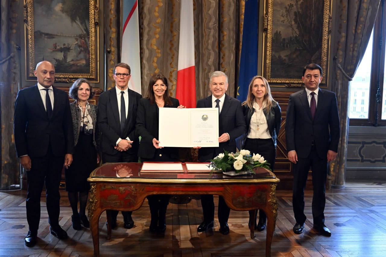 Davlatimiz rahbari va Parij meri Oʻzbekiston Prezidenti faxriy mehmon sifatida Parij shahrida boʻlgani toʻgʻrisida qoʻshma hujjatni imzoladilar. Ushbu esdalik yorligʻi meriya muzeyida namoyish etiladi.