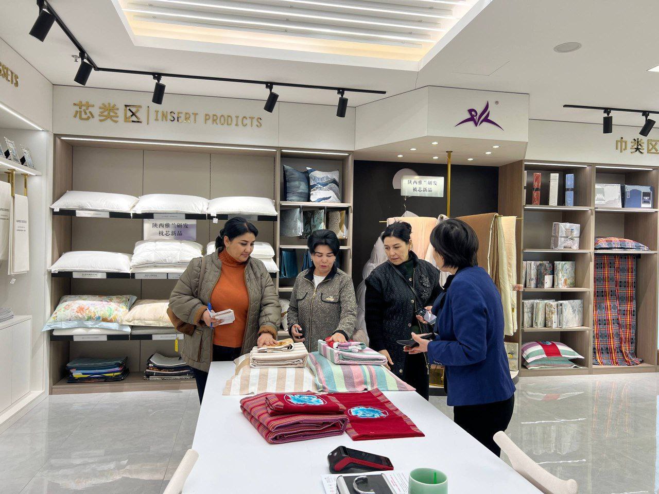 Maʼlumot uchun: Shensi provinsiyasi Xitoyning sanoati rivojlangan hududlaridan biri boʻlib, iqtisodiy taraqqiyot hamda kambagʻallikni qisqartirish dasturlarini amalga oshirish borasida salmoqli tajribaga ega. Delegatsiya mazkur provinsiyadagi sochiq, choyshab, yotoq buyumlari kabi mahsulotlar ishlab chiqarishga ixtisoslashgan, asosiy mijozlari nufuzli mehmonxonalardan iborat boʻlgan “Shaanxi Yalan Group” toʻqimachilik fabrikasi faoliyati bilan tanishdi. Shuningdek, “Shaanxi Lyutsindju Food Sayens and Technology” soyani qayta ishlash zavodidagi ish jarayonlari, zamonaviy texnologiyalar, tadbirkorlik tajribalari oʻrganildi.